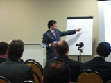 Сразу после выступа президента слово взял представитель нашей компании Дмитрий Самойлов. Он рассказал присутствующим об особенностях инвестирования и оптимизации налогообложения с помощью нерезидентных компаний. В своем докладе Дмитрий остановился на отдельных положениях правого регулирования режима иностранного инвестирования в украинскую экономику (резидентов Украины). Он вкратце рассказал о видах иностранных инвестиций и особенностях их использования. Также осветил вопрос форм осуществления иностранных инвестиций.